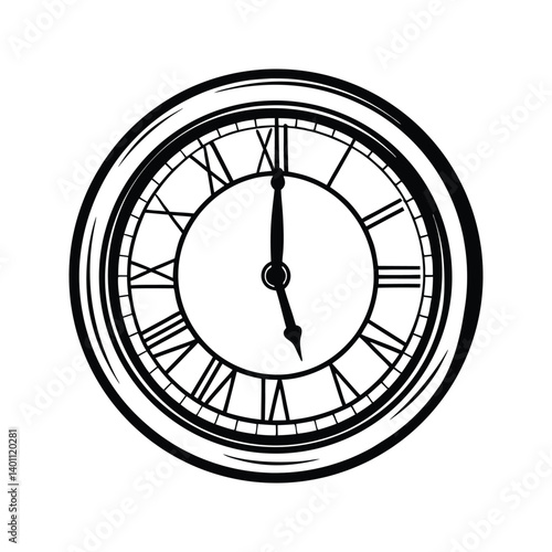 Clock with roman numerals clock icon silhouette vector with white background