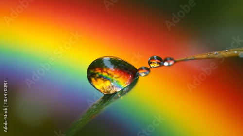 Close shot of a rainbow reflected on a dewdrop, capturing a fleeting miracle of beauty.