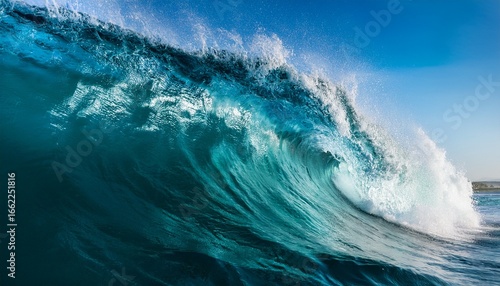 close up detail of powerful teal blue wave
