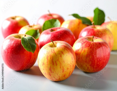 close up Fresh red Apple with green leaf