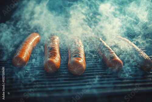 close up hotdogs grilling