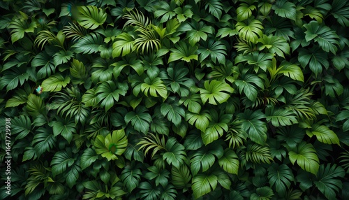 Close up Lush Green Tropical Plant Wall