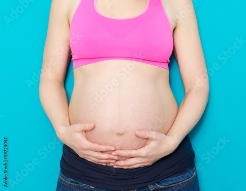 Close up mother holding pregnant stomach