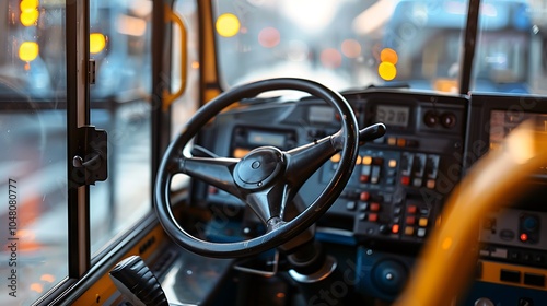 Close up of a bus driver seat dashboard with intricate controls