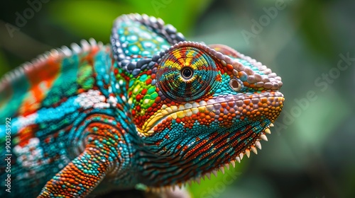 Close up of a colorful Chameleon in wilderness of Singapor