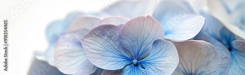 close up of a light blue hydrangea on white background
