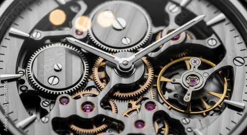 Close up of a mechanical watch showcasing intricate gears and precision