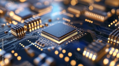 Close Up of a Modern Computer Chip on a Circuit Board : Generative AI