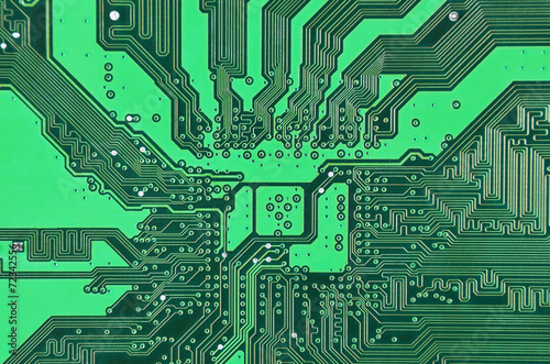 Close up of a printed green computer circuit board