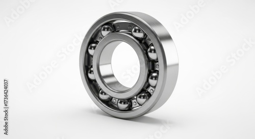 Close up of a shiny metal ball bearing component with small balls inside white background