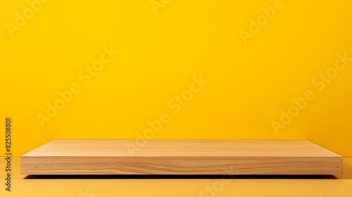 Close up of a square wooden Pedestal for Product Presentation. Empty yellow Showroom
