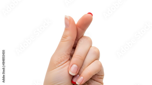 Close up of a womans hand making the korean finger heart gesture, love symbol, isolated on transparent background