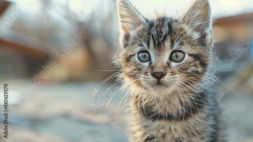 Close up of an adorable small Siberian kitten