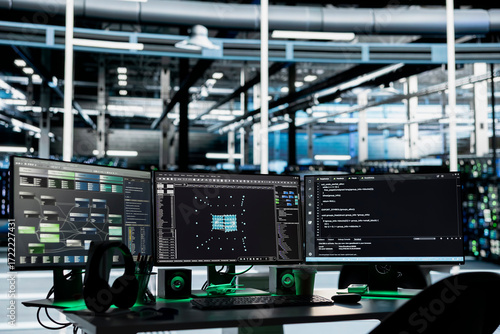 Close up of computers in data center controlling network resources. Hardware in high tech server room delivering immense computing power, capable of processing and storing vast amounts of data