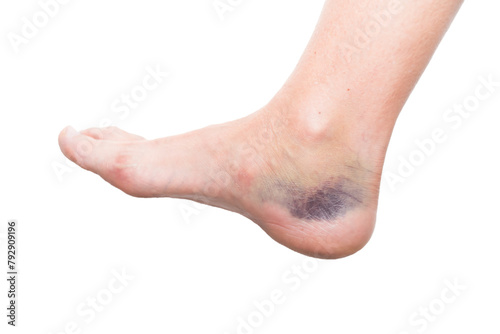 close up of foot with injury, sprain, strain, inflammation, kinesiology