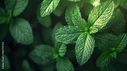 Close Up of Fresh Green Mint Leaves