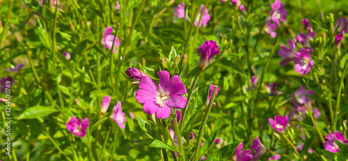 Close up of great willwherb (epliobium hirsutum) flowers in bloom