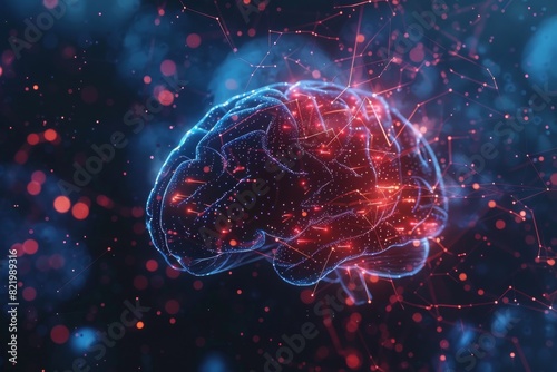 close up of human brain showing neurons firing and neural extensions, generative ai