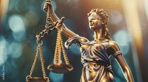 Close up of Lady Justice statue with closed eyes with law and justice concept. Ai generated image