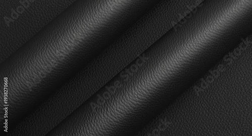 Close up of manufacturing black leather rolls with designated copy space