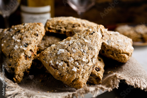 Close up of savory scones served on plate