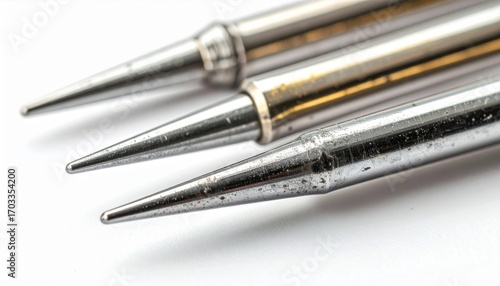 Close Up of Silver Soldering Iron Tips for Electronics Repair in White Background