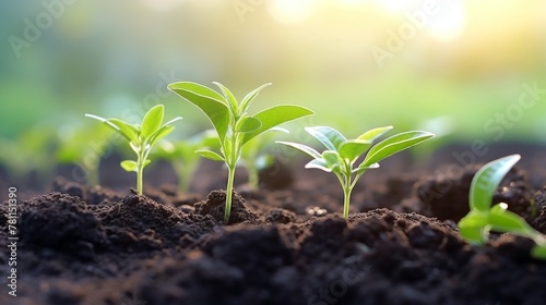 Close up of thriving tea plant seedlings in the plantation