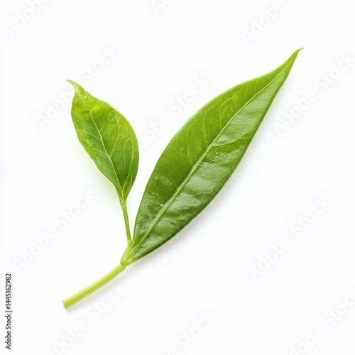 Close Up of Vibrant Green Tea Leaf on White Background