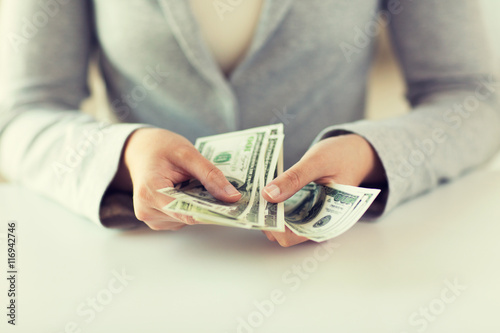 close up of woman hands counting us dollar money