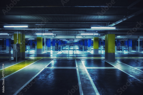 Close up on underground parking with empty slots