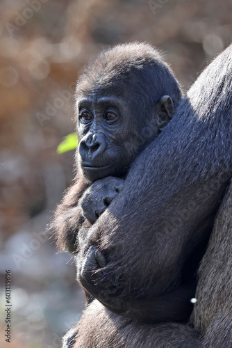 Close up shot of a cute young western Lowland Gorilla
