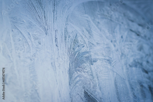 Close up shot of the frosted window. Background