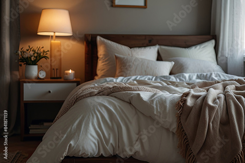 Close up view of a comfortable bedroom, inviting relaxation and tranquility.