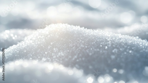 Close Up View of Shiny White Snow Surface with Blurred Background