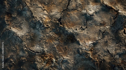 Close up view of the textured dried earth with clay and sand