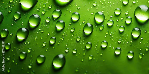 Close up water drops on green background