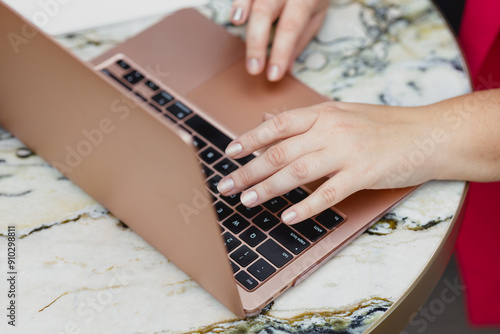 Close up woman typing on a laptop