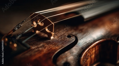 Close view of a beautifully crafted violin capturing intricate details and craftsmanship in warm lighting