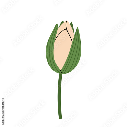 Closed lotus bud cream coloured. Water plant flower on a white background. Flat illustration for summer prints and backgrounds, logo, wedding invitation or yoga studio.