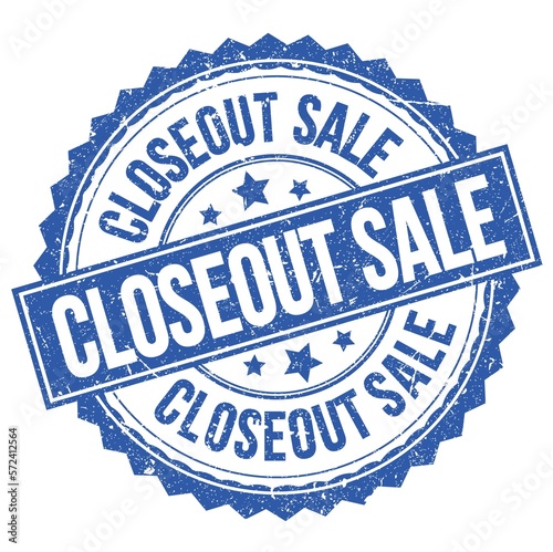 CLOSEOUT SALE text on blue round stamp sign