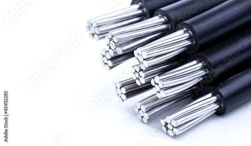 Close-up, Aluminum electrical power cable isolated on white