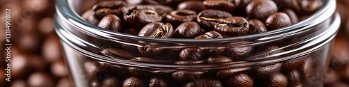Close-Up Arabica Roasted Coffee, Delicious Texture Background in Jar Full of Fresh Beans