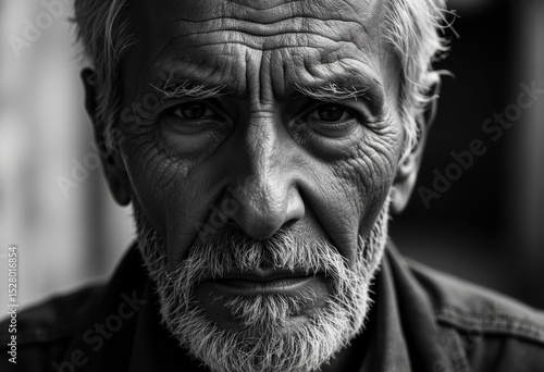 Close-up black and white portrait of an elderly man with detailed facial features