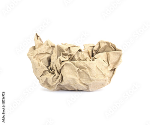 Closeup brown crumpled paper isolated on white background with clipping path