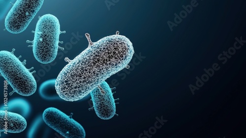 Close-up depiction of digital abstract bacteria with wireframe structure on a dark background.