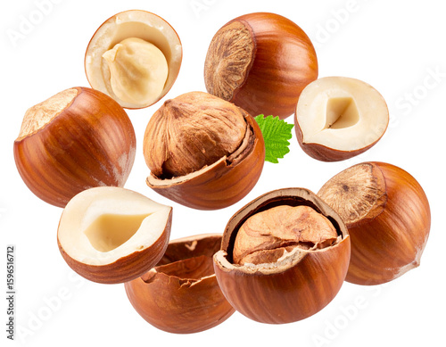 Close-Up Flying Cracked Hazelnuts in Rotational Motion, Depth Focus