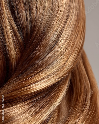 close-up healthy shiny hair with natural gloss, smooth texture,