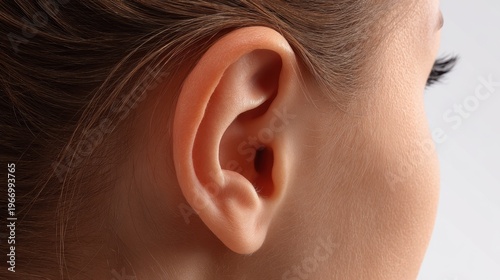 Close-Up Image of a Human Ear Showcasing Detailed Anatomy and Texture for Educational and Medical Purposes in Healthcare and Biology Contexts