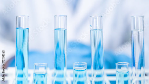 Close-up laboratory equipment test tube beaker dropper pipette science research biotechnology chemistry healthcare and medical vaccine development innovation DNA antibiotic clinic hospital flask