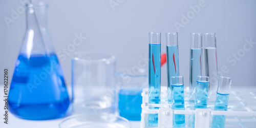 Close-up laboratory glassware science experiment pharmaceutical industry healthcare medicine chemistry discovery research and development biology biotechnology innovation hospital vaccine DNA analysis